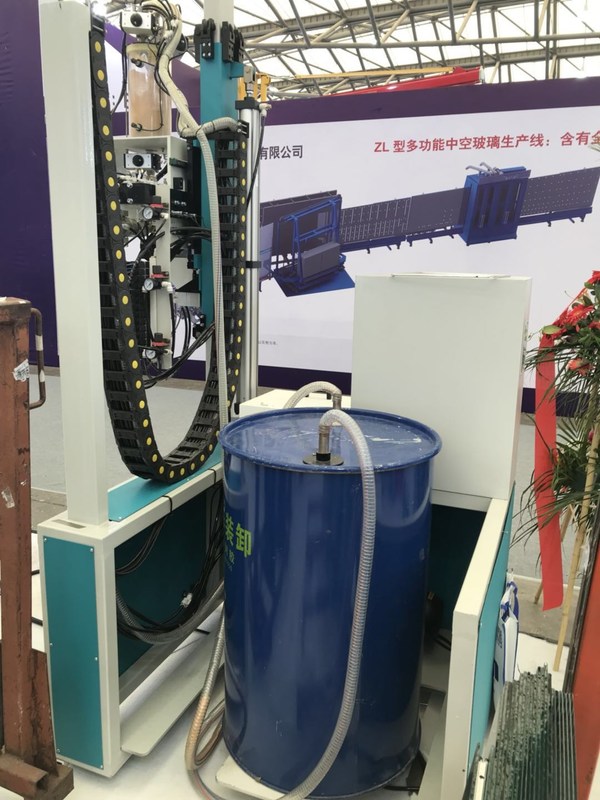 Para el robot automático del lacre, la cabeza mecánica está delante de máquina, él puede alcanzar la conexión real con la cadena de producción de la doble vidriera al producir el vidrio del paso.