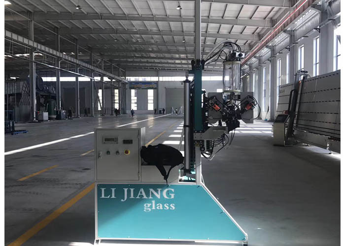 Para el robot automático del lacre, la cabeza mecánica está delante de máquina, él puede alcanzar la conexión real con la cadena de producción de la doble vidriera al producir el vidrio del paso.