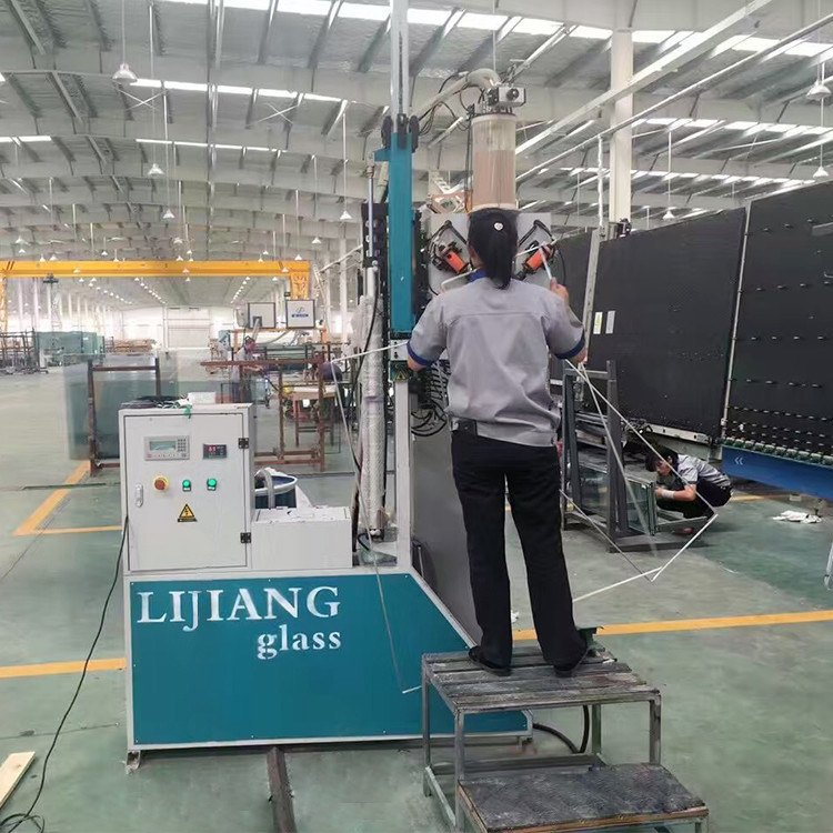 Para el robot automático del lacre, la cabeza mecánica está delante de máquina, él puede alcanzar la conexión real con la cadena de producción de la doble vidriera al producir el vidrio del paso.