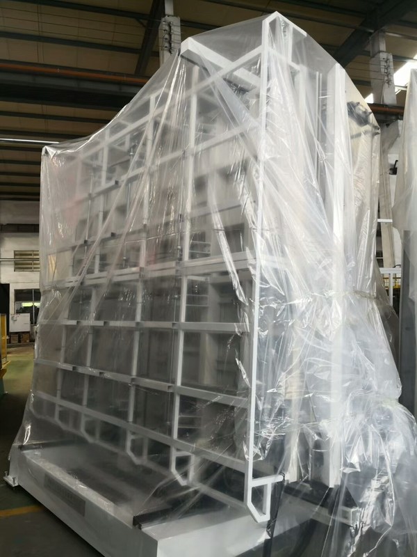 : La parte acuciante fue dividida en 4 porciones, (por 800m m), cuando el paso tamaño pequeño del vidrio (menos de 800m m) con presionar y sección del relleno del gas, solamente una porción work.if más de 800m m sino menos de 1600m m, él dos porciones trabaja, necesita no el trabajo de relleno entero de la sección de la prensa y del gas. puede ahorrar el gas del argón.