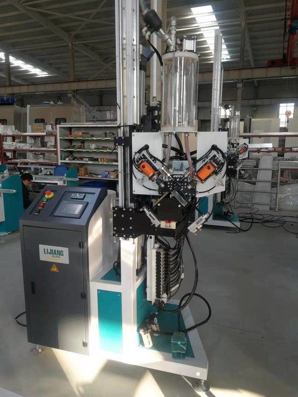 La máquina de rellenar automática del tamiz molecular es un equipo auxiliar para la producción de vidrio aislador. Se utiliza para llenar el desecante en divisiones de aluminio de cristal huecos, y se utiliza conjuntamente con las dobladoras de la división automática. Puesto que la junta formada no se puede llenar por métodos convencionales, hemos desarrollado una máquina de rellenar desecante automática para esta junta. Esta máquina de rellenar puede llenar no sólo el marco de aluminio curvado pero también las divisiones de aluminio de los ejes.